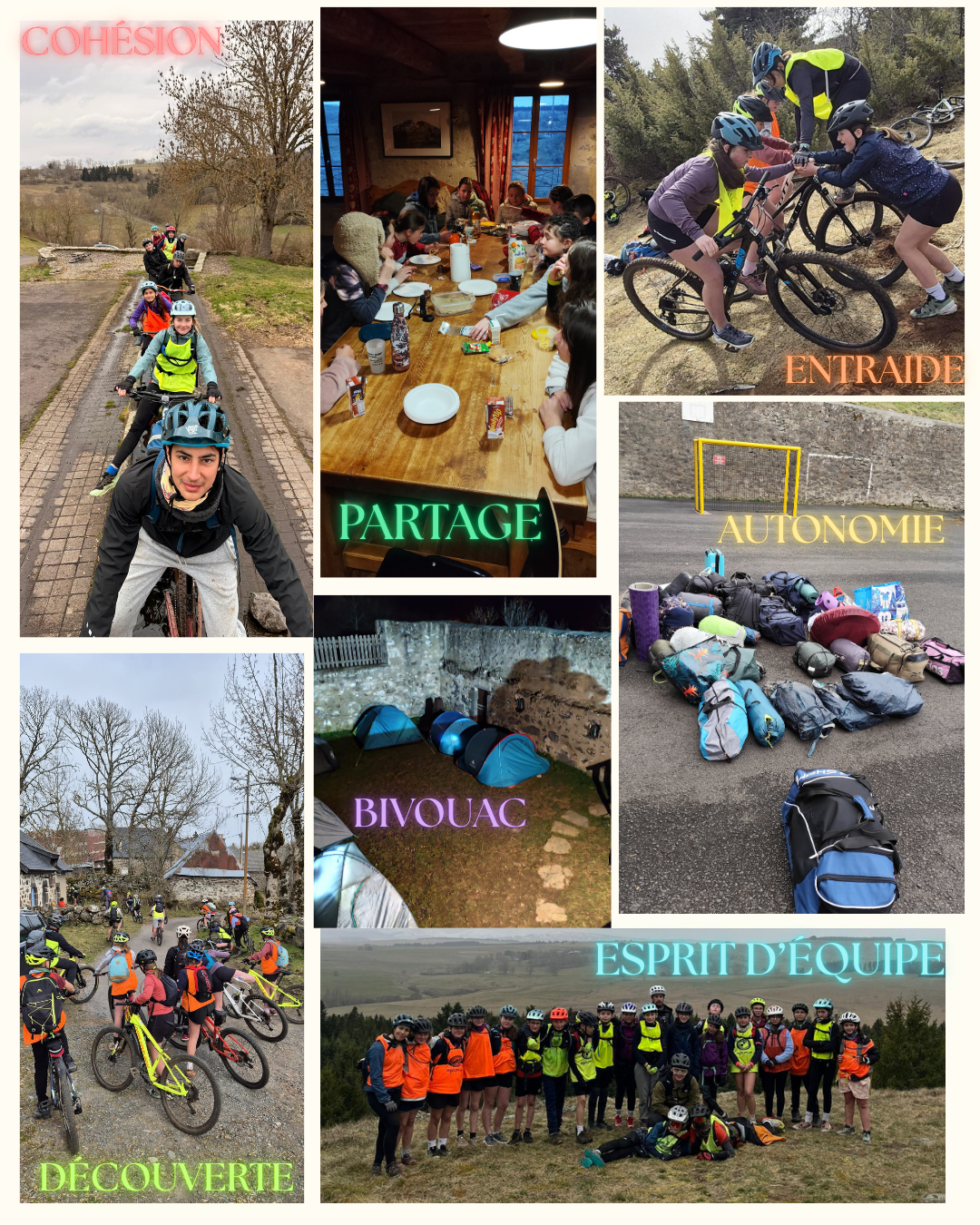 Tous les groupes section ont bénéficié d'un stage de perfectionnement VTT encadré par les moniteurs de l'école VTT MCF, leurs stagiaires Fred et Nathan, ainsi qu'Albane, AED, et Mathilde, ancienne élève.