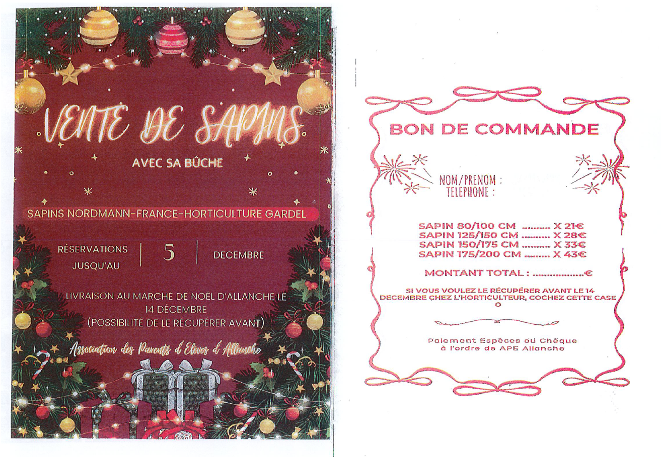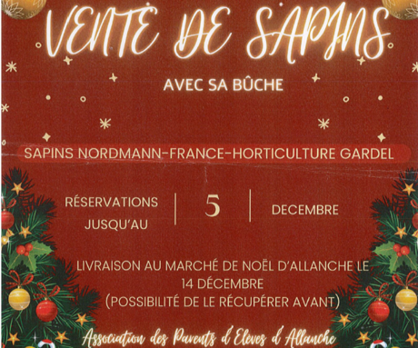 L'APE d'Allanche vous propose de commander des sapins de Noël à récupérer lors du marché de Noël du 14 décembre !